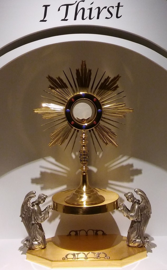 “How do we grow in a deeper love of Jesus Christ in the Blessed Sacrament? By taking every opportunity of being in His Eucharistic Presence during the day and, shall I add, into the night. “
